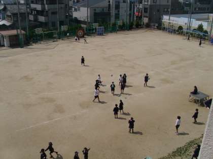 みんな元気にボール遊びをしていました。とりわけ、6年生のドッチボールは迫力があり、すごいスピードのボールを投げていました。
