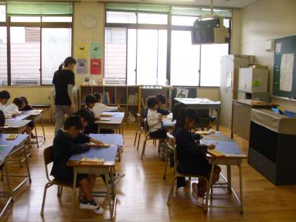5月10日(火)、1年生の図工の学習の様子です。「うちゅうさんぽ」という題で、絵を描いていました。