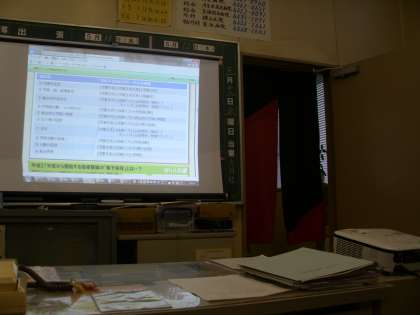 SKIP連絡掲示板の活用や校務支援ICT関連、さらに学校ICT活用事業について概要を確認したのち、3月末に整備されたタブレット端末の使用方法を実習しました。