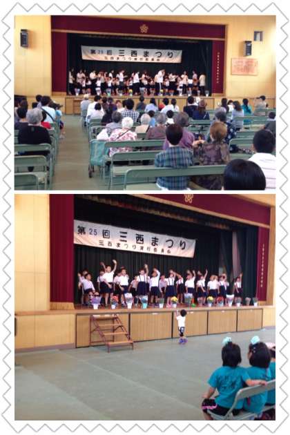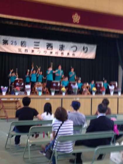 オープニングは和太鼓の演奏です。続いて、三西幼稚園、三西小学校の子どもたちの演技が続きます!