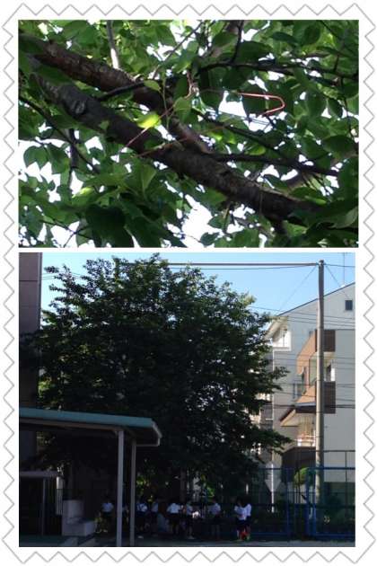 実は、管理作業員さんが校庭の桜の木に作ってあったカラスの巣を見つけ、撤去してくれたものです。幸い近くには、カラスがおらず、速やかに撤去出来ました。