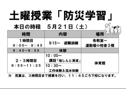 9:15より、「避難訓練」 各教室⇒運動場⇒校舎3階