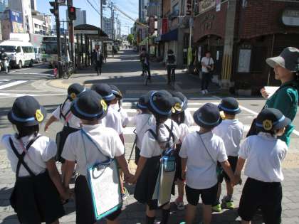 駅へ向かう横断歩道は、自転車が多く通り、とても危険だったのでしっかり手をつないで渡りました。