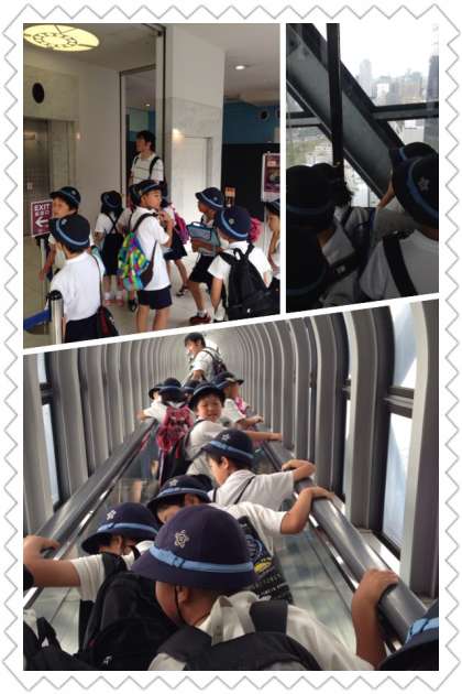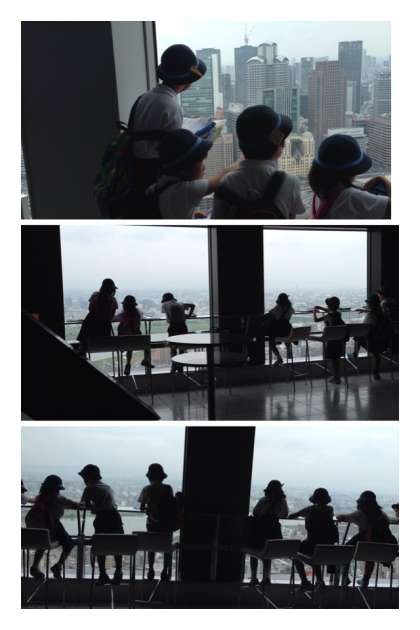 高速エレベーターと長いエスカレーターを乗り継いで展望室まで到着しました。空中庭園まであと少し!