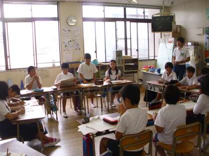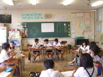 「標準服は必要か」というテーマでディベートの練習をしました。机を四角く向い合せにして、必要か、必要でないか、意見を出し合いました。