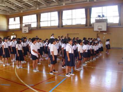 続いて、夏休みの諸注意があり、大阪市歌と校歌を歌って、式が終わりました!!