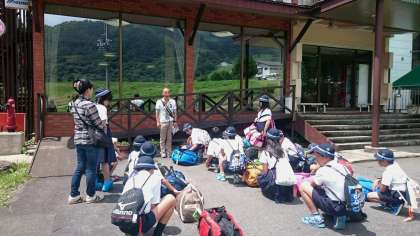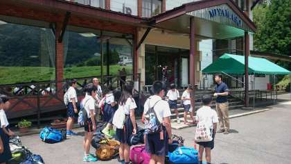 無事に宿舎に到着しました!こちらもいい天気です!開舎式を終え、これから荷物を置いて魚つかみに行きます!