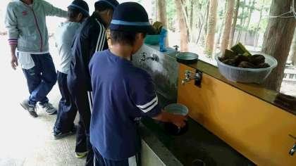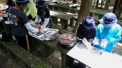 かまど係、野菜係、お米係に分かれて、カレーを作ります。