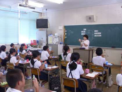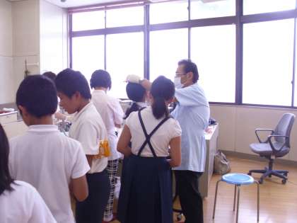 学校歯科医の先生と大阪市教育委員会より歯科衛生士さんに来ていただき、歯みがき指導とフッ化物塗布をしていただきました。
