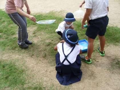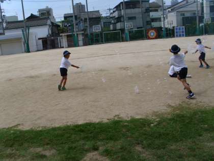 9月7日(水)、1年生が生活科でシャボン玉を作っていました。