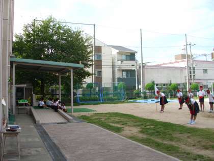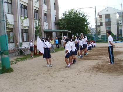 校舎の入り口では、未来の応援団が先輩の練習を見つめていました!!