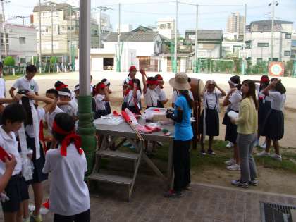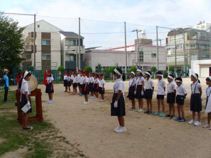 午前8時前には、子どもたちが集合し、準備を始めました。全員そろっての最初の練習なので、少し緊張しているようです。