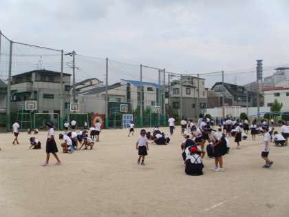 9月12日(月)、児童朝会の後、先週出来なかった運動場の小石拾いをしました。