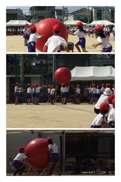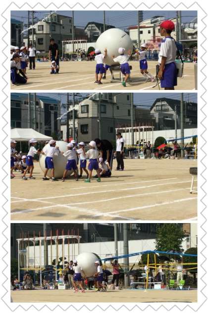 「ワッショイ三西!!」です。みんなの力で大玉を運びました!