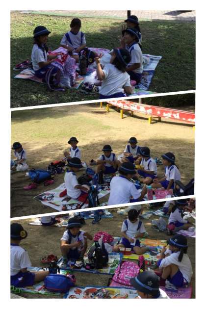 思いきり遊んだ後は、みんなで仲良くお弁当!!