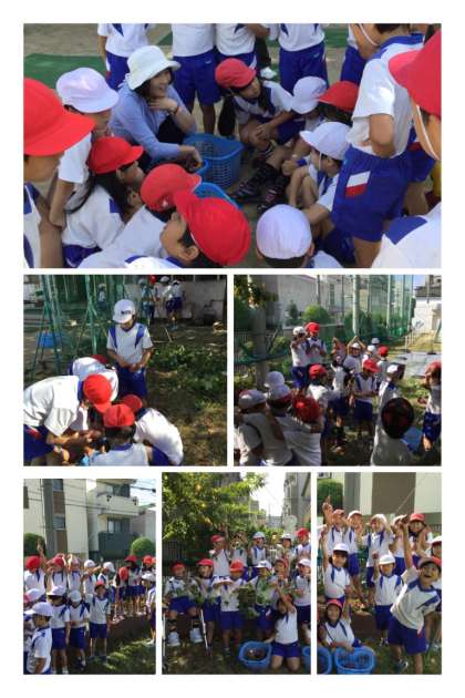 最初に長いつるを切って、いも掘りの開始です。みんな必死で土を掘り起こし始めました。