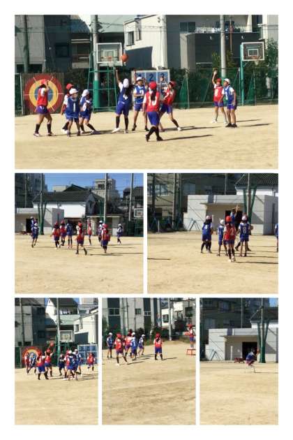 晴れ渡る秋空の下、バスケットボールじゃなくてポートボールをしていました!!子どもたちは、パスを回して、台上で待つチームメートにボールをパスしようとしますが、 上手くいきません。
