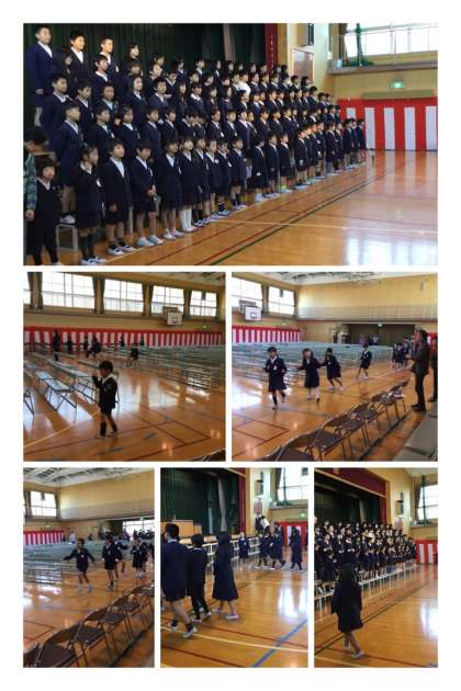 子どもたちは入場から練習しました。軽快な音楽に乗って入場しましたが、本番を直前に控え、とても緊張した面持ちでした!!