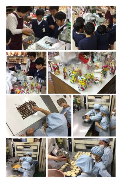 つるやさんでは、お菓子の袋詰めやレジ打ち、洋菓子づくりを体験させていただきました!!