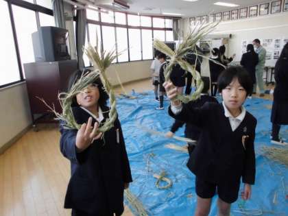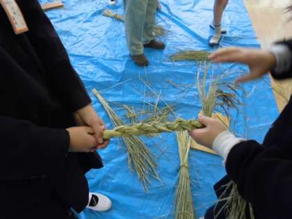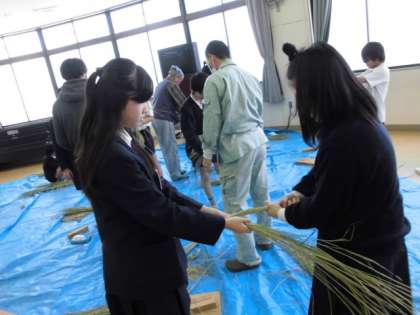 しっかりとほぐしたわらを二人一組で編みこんでいきました。