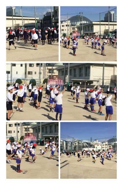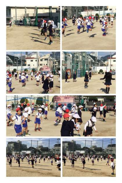 準備体操をして、最初は自由に跳び、みんなで後ろ跳びをして、1分間音楽に合わせていろんな跳び方に挑戦しました。