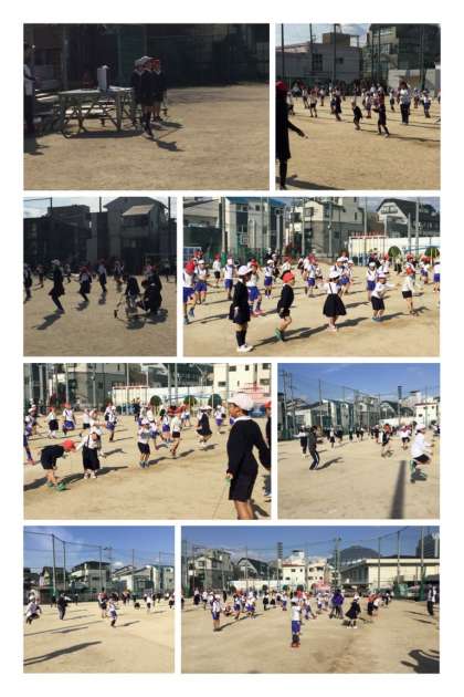 2時間目が終わると子どもたちは口々に「寒い、寒い」と言いながら、なわとびを持って運動場に出てきましました。