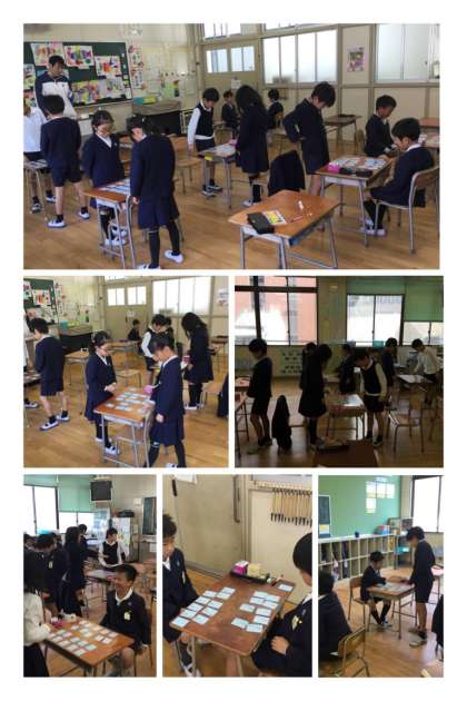 3年生が百人一首を、1年生が凧づくりをしていました!!