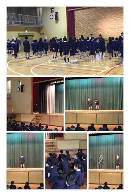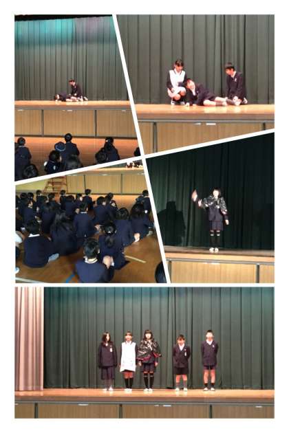 1月19日(木)、今日の児童集会は保健委員会が手洗い・うがいを啓発する劇をしてくれました。