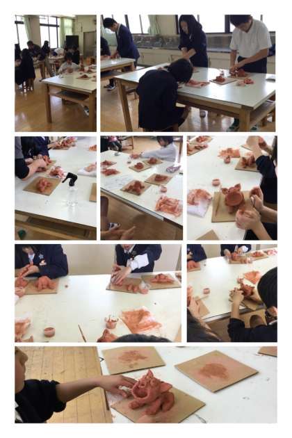 5年生は、図工室でシーサー作りです。