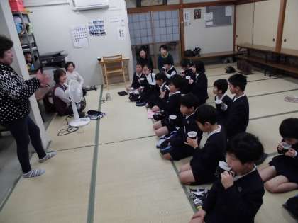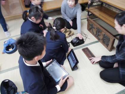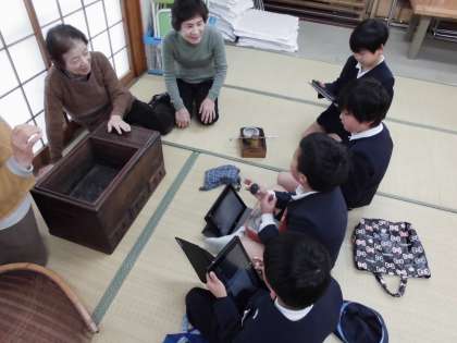 1/30(月)、三西ネットワークの方々に協力していただき、福祉会館にて「昔のくらしを知る学習」を行いました。子どもたちは、今年度導入されたタブレット端末で写真を撮りながら、道具の名前や使い方についての話を聞きました。