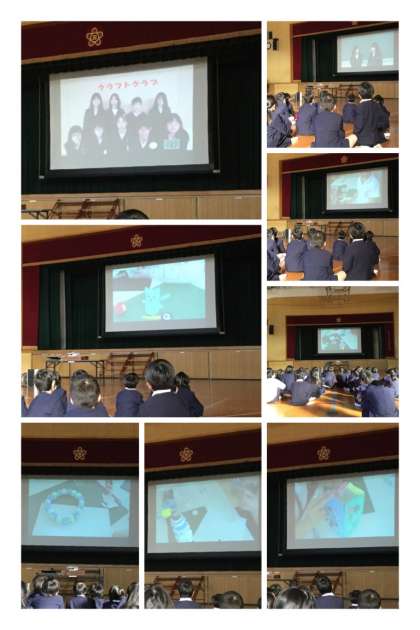 クラフトクラブは、作品を作っている様子をプロモーションビデオをプロジェクターで流し、ものづくりの楽しさを紹介しました。