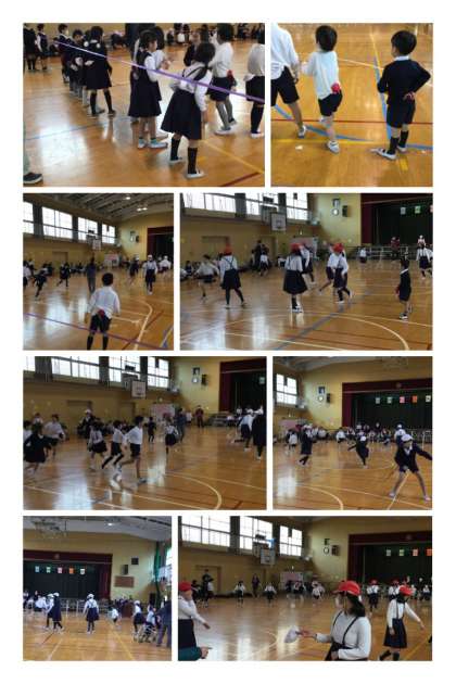 「6年生と遊ぼう」では、1〜3年生とは「しっぽ取り」を、4・5年生とは「追っかけ玉入れ」をしました。
