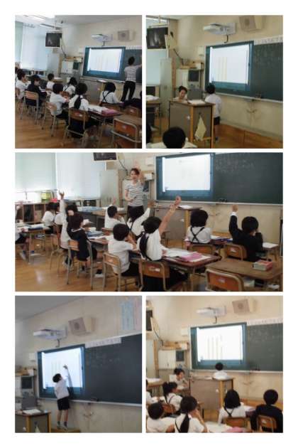 デジタル教科書の画像のブロックを取り出し、計算の方法を考えていました。プロジェクターには、電子黒板機能がないので、ロールスクリーンに映しだしたブロックに??をうっていました。