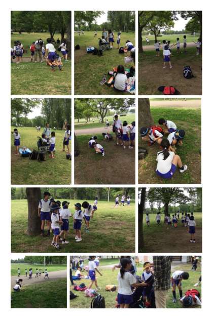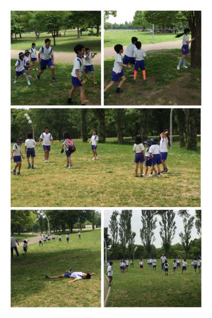 お弁当とおやつを食べ終えたら、みんなで遊びます。広〜い公園、何して遊ぼうかな??