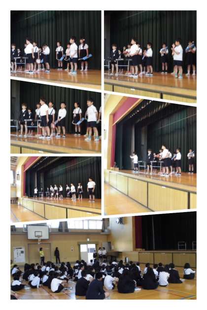 5月18日(木)、今日の児童集会は、2年生の発表がありました。三西まつりでも、発表した歌と合奏をしました。