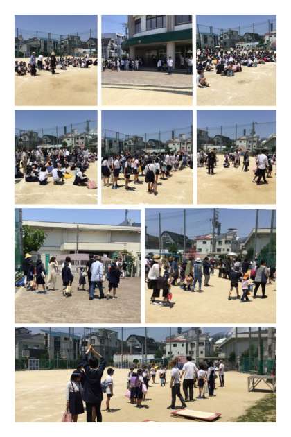 5月22日(月)、土曜授業では、保護者の皆さんにも協力いただき、災害時の子ども引渡し訓練も実施しました。初夏を思わせる日差しの下、たくさん参加いただきました。保護者の方が来られない場合は、先生と一緒に集団下校しました。