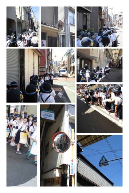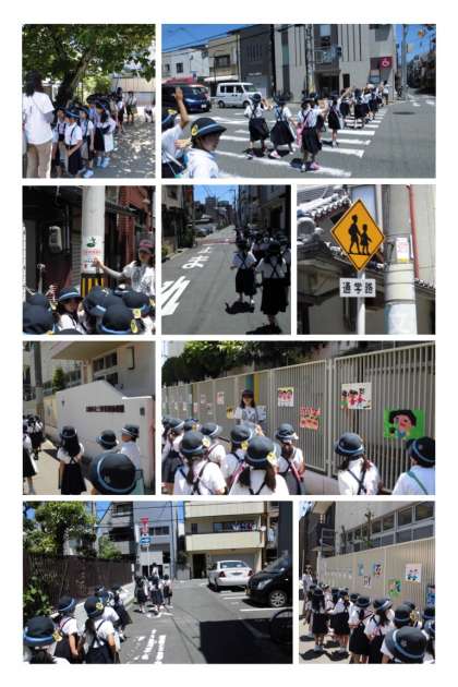 6月5日(月)、1年生が「通学路たんけん」をしています。今日は学校の南側を探検してきました。