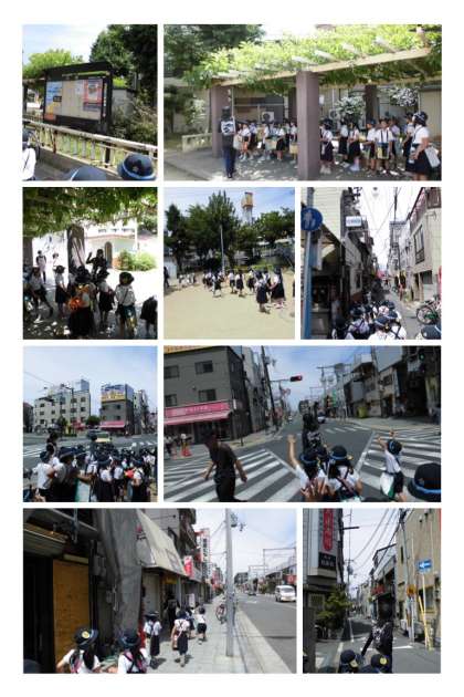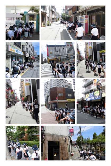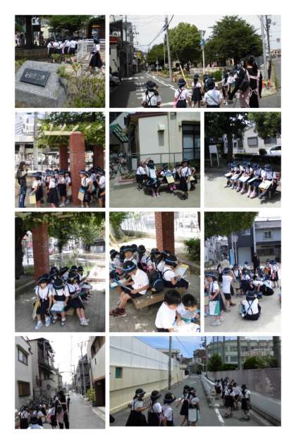 JR大正駅から大正橋公園、岩崎橋公園まで行き、水分補給の休憩をとりました。探検したことをまとめ、友だちと話したりしました。