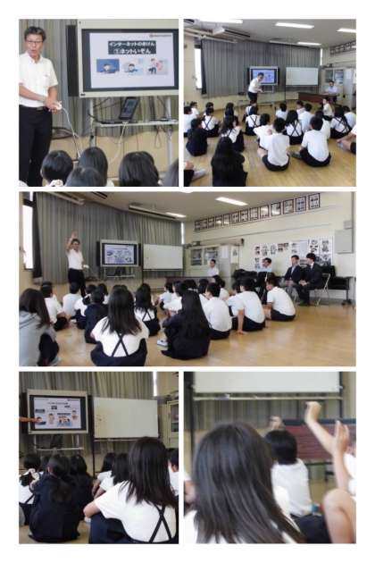 子どもたちが情報モラルをしっかりと身につけ、ネット依存症やネット犯罪に巻き込まれないようにと、e-net安心キャラバン隊事務局の方がお話ししてくださいました。