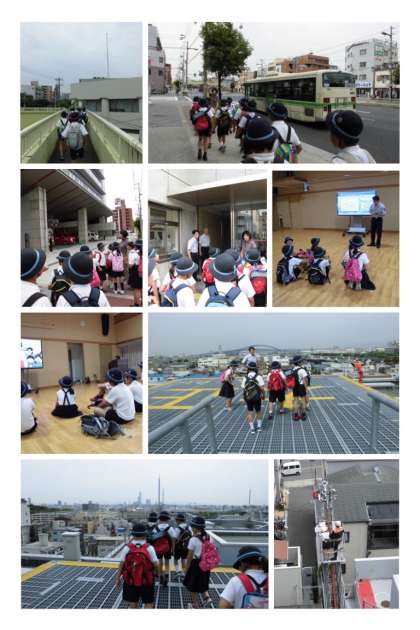 6月27日(火)、4年生が消防署見学に行ってきました。三軒家から小林までバスに乗り、降りればすぐに大正消防署がありました。署内では2班に分かれ、建物内の見学と消防車の見学をしました。