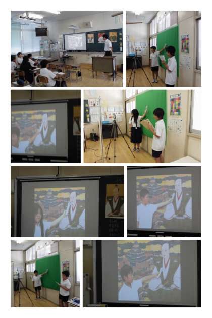 クロマキーを使い、三武将にインタビューして、質問している様子をプロジェクターに映し出しました。子どもたちは、三武将に成りきり、工夫して発表していました!!