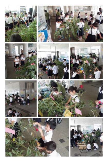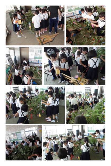 7月4日(火)、1年生が七夕の笹飾りを作っていました。