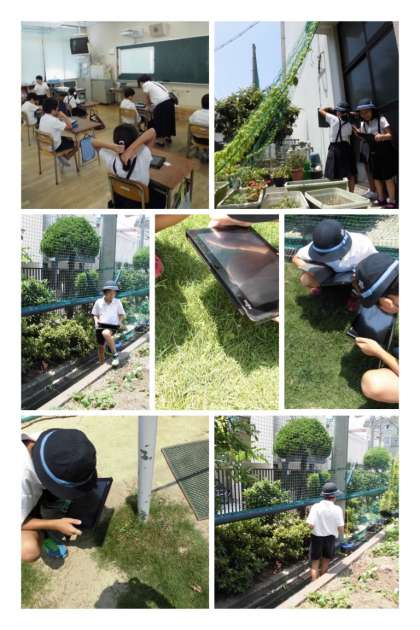 7月14日(金)、昨日、4年生がタブレット端末を使って、植物の観察をしていました。