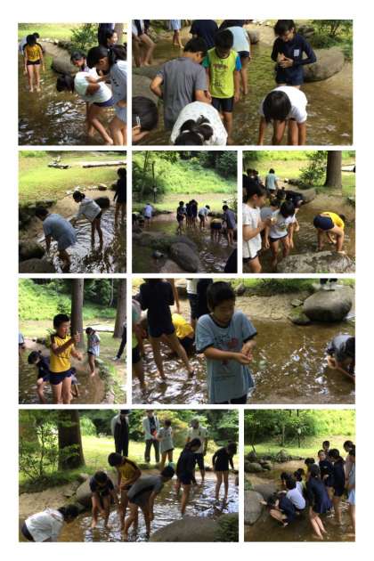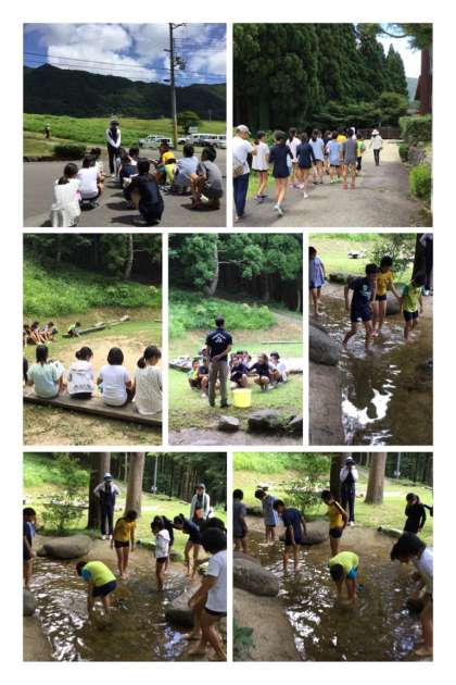 最初のプログラムは、魚づかみです。元気なアマゴが捕まえられるか不安でしたが、全部捕まえることができました!!
