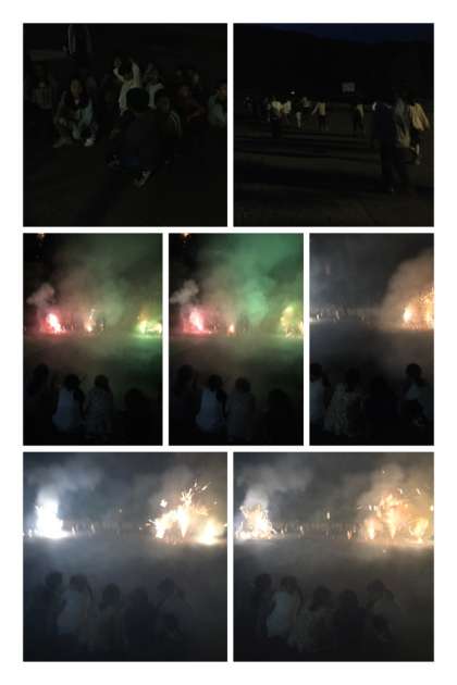 今日のフィナーレは、花火大会!!最初に打ち上げ花火を見て、手持ち花火をしました。一人5本の花火を楽しみました!!
