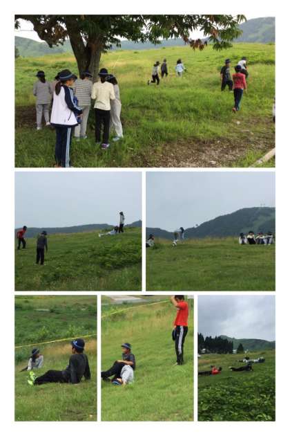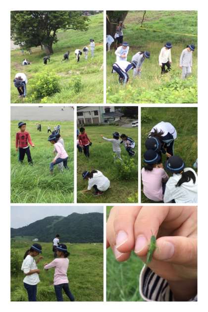 アイスクリームを食べたあとは、草原で自由時間。バッタ取りとローリング族に分かれました。