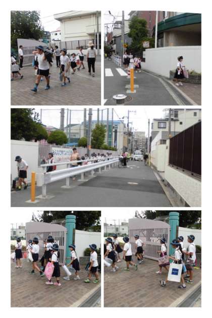 午前8時10分には、子どもたちは両手に課題の図画や工作作品の入ったカバンを持って、元気に登校して来ました。