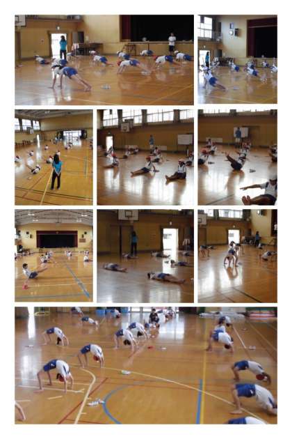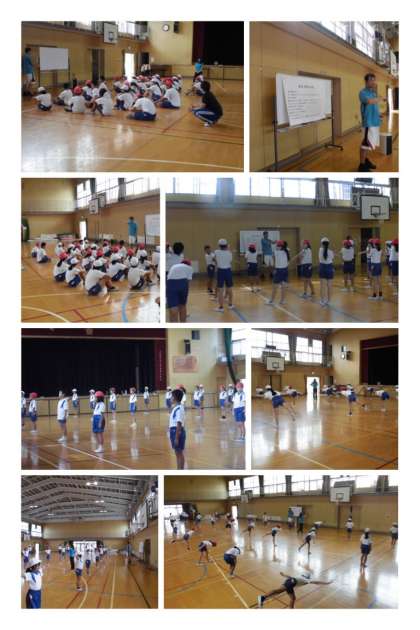 高学年は、運動会恒例の団体演技の組立体操からスタートしました。最初に組立体操の諸注意をしっかり聞いて、準備体操をしました。体を慣らすためにゆっくり個人技から練習をしました。