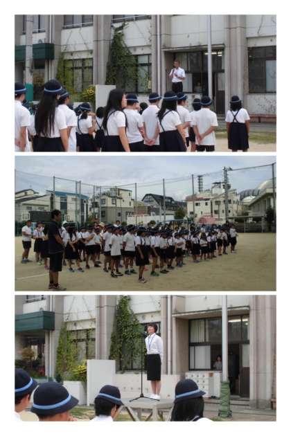 集会終了後は、全学年が運動会の行進練習で、運動場を1周して、教室に戻りました!!