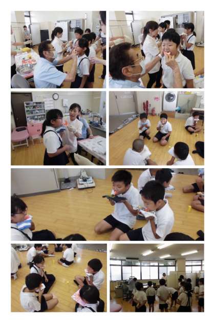 引き続き、4年生では、歯磨きの指導をしていただき、歯を丈夫にするためにフッ化物塗布をしていただきました。